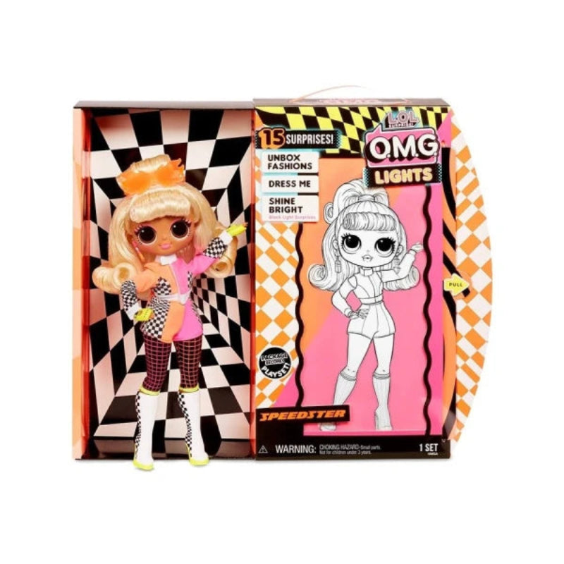 The L.O.L. Surprise! O.M.G. Lights Speedster Fashion Doll combines high-fashion style with dynamic design, featuring vibrant colors and detailed accessories. Crafted for collectors and enthusiasts, this doll offers a unique blend of trend-forward aesthetics and playability, making it an exceptional addition to any collection. Its sleek, speed-inspired outfit and articulated joints allow for expressive posing, enhancing display possibilities and imaginative play.