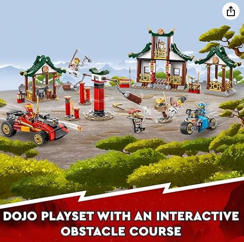 LEGO® NINJAGO® Creative Ninja Brick Box (71787) is a vibrant, 530-piece set for builders aged 5+, combining structured play and open creativity . It includes a dojo-style brick box with three buildings, an obstacle course featuring spinning punch bags, a training dummy, and log steppers, plus a ninja car, motorbike, and weapons-filled armory . Featuring six minifigures—Kai, Nya, Master Wu, a female and male apprentice, and Bone Hunter—it spark ninja-themed role-play . The bricks double as a storage box for easy cleanup, and the LEGO Builder app adds 3D instructions, zooming, and progress tracking This set delivers engaging ninja training adventures while nurturing imagination and building skills.
